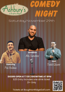 This show is being headlined by Abi Sanchez and features Pat Bolduc while being hosted by Todd Glover!