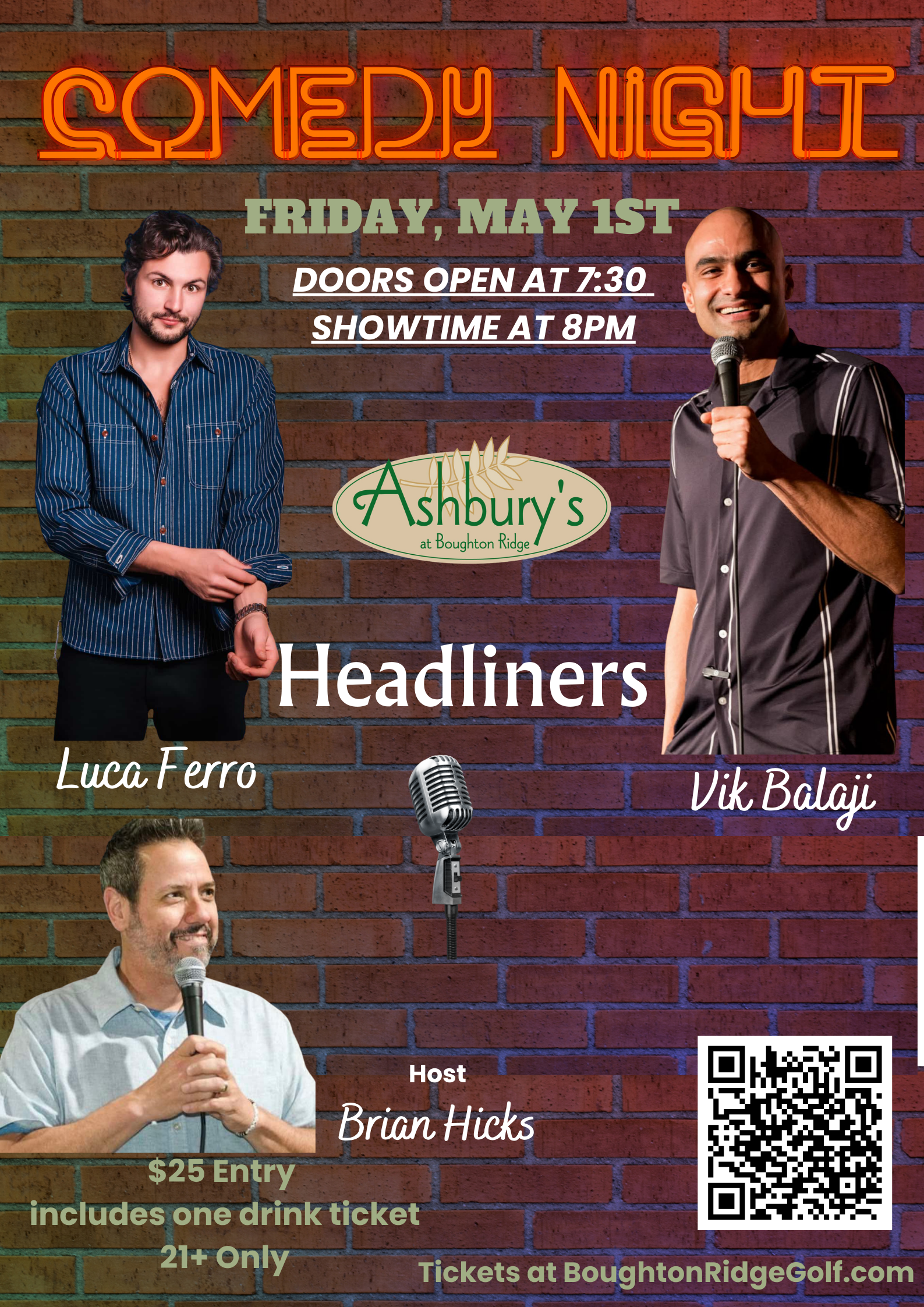Get ready for a night full of laughs as Comedy Night returns to Ashbury’s Dining Room! Join us for an evening of stand-up featuring three hilarious comedians bringing unique styles and big laughs to the stage.